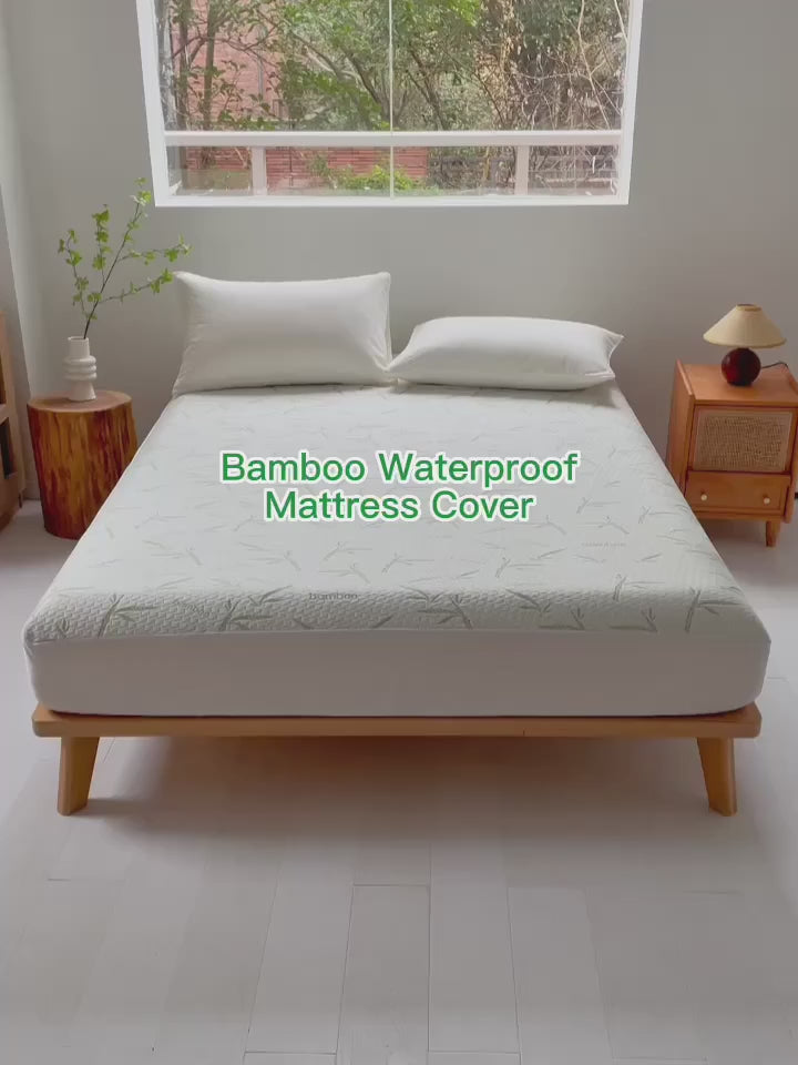 Transform your sleep with our Cooling Bamboo Waterproof Mattress Cover. Crafted from 100% bamboo fiber, this mattress cover offers a luxuriously soft and breathable surface that ensures a cool and comfortable night's sleep. The innovative 3-layer design includes a thicker, fluffier filling for added comfort and a 100% waterproof TPU back to protect your mattress from spills and stains—ensuring a noise-free, restful sleep.